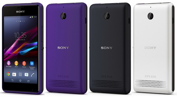 Theo tuyên bố của Sony, Xperia E1 có ba màu là đen, trắng và tím sẽ được dùng để tấn công vào phân khúc smartphone giá rẻ nhưng họ không cho biết mức giá chính xác của thiết bị này.